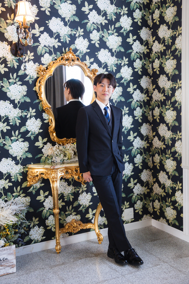 撮影では、当店の袴姿に加えてご自身のスーツでも撮影し、雰囲気の違うカットを楽しまれました。