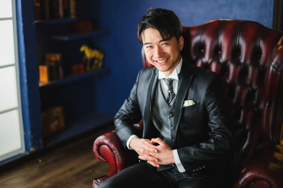 撮影では羽織袴だけでなく、シックなタキシード姿でも撮影。