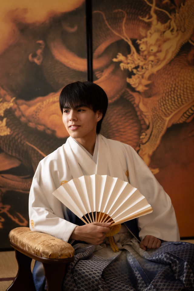 横浜店人気の和室スタジオで、羽織袴姿のご成人様をお撮りした素敵なポートレートです。