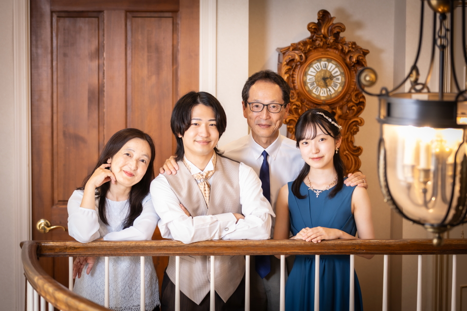横浜店の2階ロビーで、ご成人様とご家族様をお撮りした素敵なポートレートです。