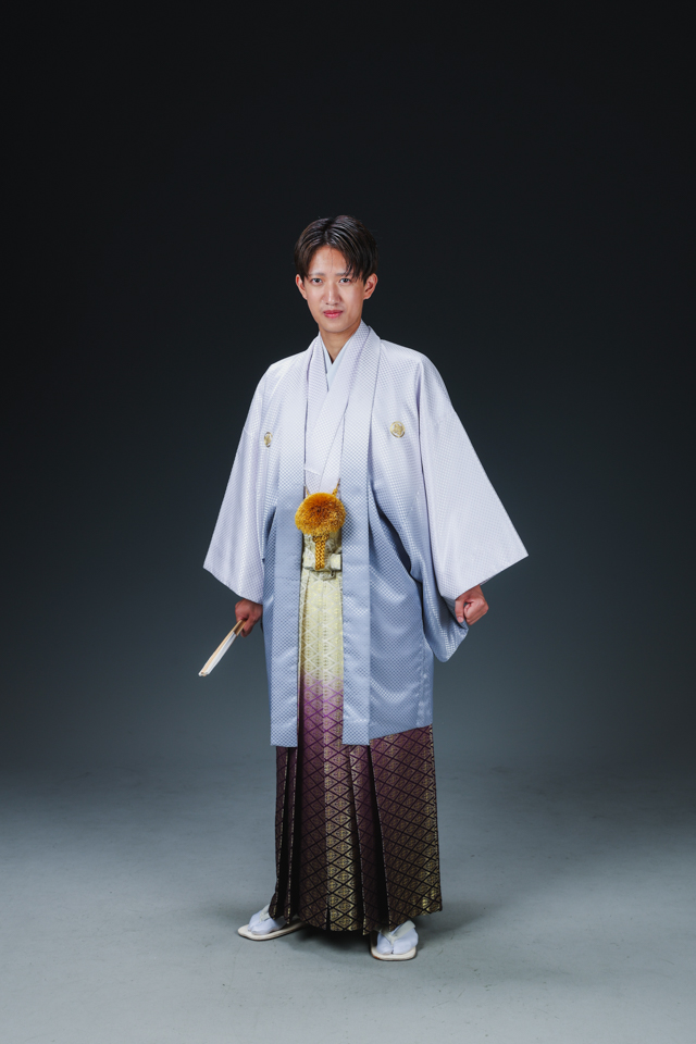 千葉市美浜区のフォトスタジオ「男性袴館幕張本店」の男性袴フォトプランのお写真です。男性の成人お祝いフォトプランにお越しいただいたお客様をご紹介します。当店のレンタル男性袴をお選びいただき、お着付けと撮影をさせていただきました。