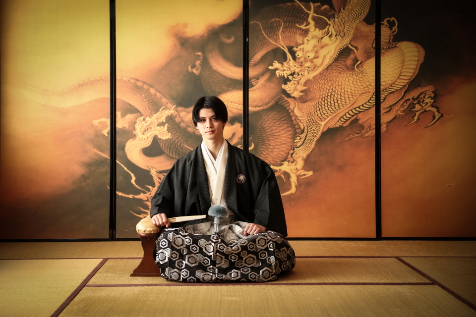 龍が描かれた襖を背景に、どっしりと座られたご成人様が大変かっこいい1枚となりました。