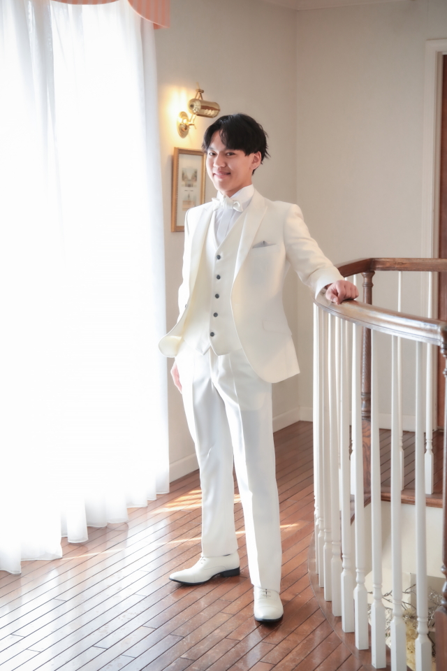 2025/11/26 「自然な状態で撮影出来ました」 ブログ 横浜店 横浜市のフォトスタジオ「男性袴館 横浜店」での成人記念のお写真です。大きな窓辺のロビーシーンで、ホワイトのタキシードを着こなす素敵なポートレイトです。 実は幼少期からの友人5人組で撮影に来て下さったご成人様。初めて見る衣装を着た姿に、それぞれに照れながらも楽しんで撮影にのぞんで下さいました。 撮影後のアンケートには「自然な状態で撮影出来ました」とコメントを下さいました。 Photo by Yokohama 該当店舗 横浜店