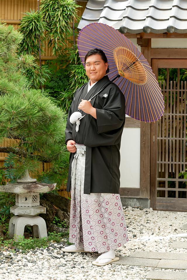 2025/05/11 「身長に合った衣装があったので」 ブログ 松戸店 松戸市のフォトスタジオ「男性袴館松戸店」の男性袴フォトプランの写真です。 衣裳合わせでは、「身長に合った衣装があったので」と黒紋付きの羽織に、亀甲文様の紫ぼかしの袴を選ばれました。 日本庭園スタジオで、紫の和傘を肩に、素敵なご表情のお写真です。 撮影後、スライドショーで写真の仕上がりをご覧になったご家族は、お喜びのご様子。 「大変親切ていねいに対応して下さいました」とアンケートにご記入いただきました。 Photo by Matsudo 該当店舗 松戸店