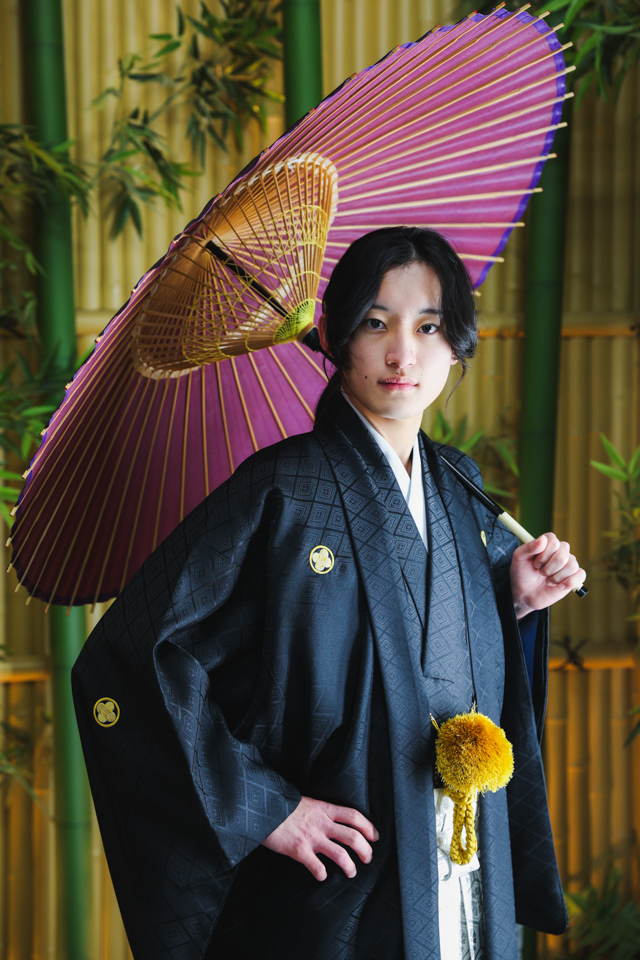 千葉市美浜区のフォトスタジオ「男性袴館幕張本店」の男性袴フォトプランのお写真です。当店の羽織袴をお召しになった成人様の素敵なポートレートです。
