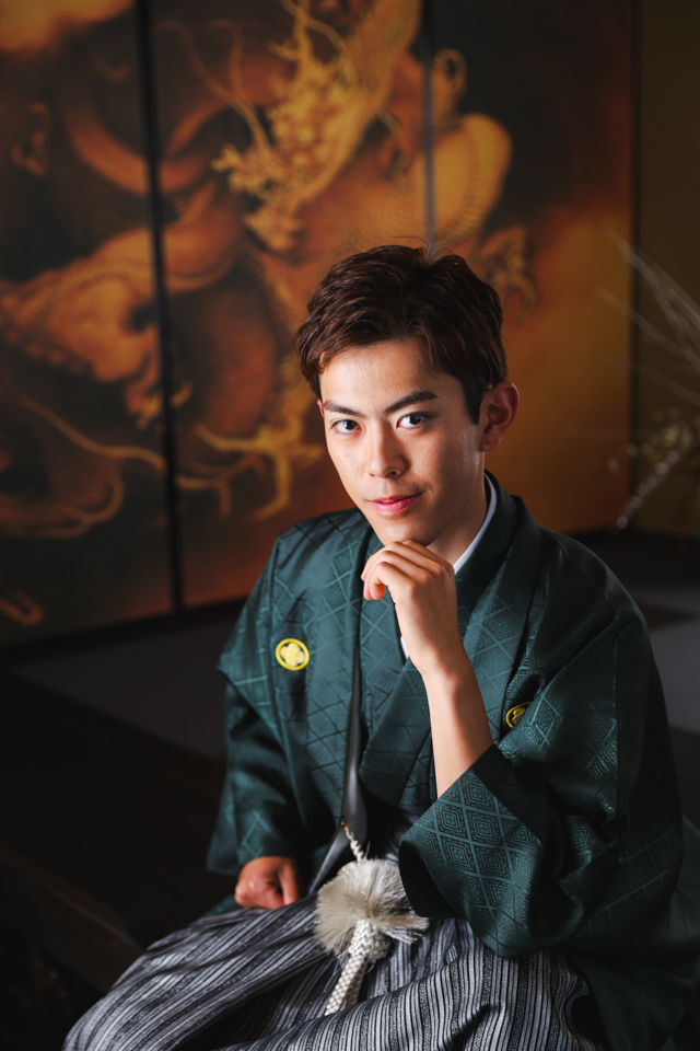 千葉市美浜区のフォトスタジオ「男性袴館幕張本店」の男性袴フォトプランのお写真です。当店の羽織袴をお召しになった成人様の素敵なポートレートです。