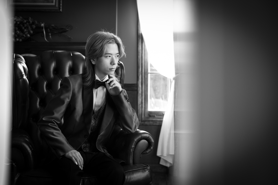 横浜店人気の英国風邸宅 応接室スタジオで、タキシード姿のご成人様をお撮りした素敵なポートレートです。