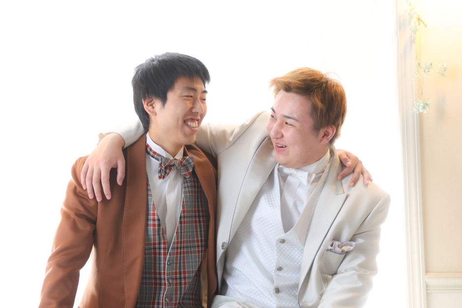 衣装合わせの段階からお二人の仲の良さが伝わってくる和やかな雰囲気で、撮影中も笑顔が絶えず、声を掛け合いながら楽しい撮影となりました。